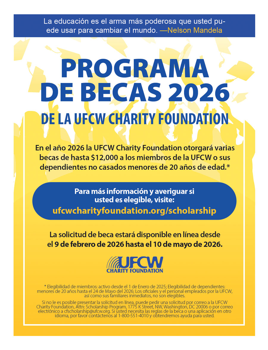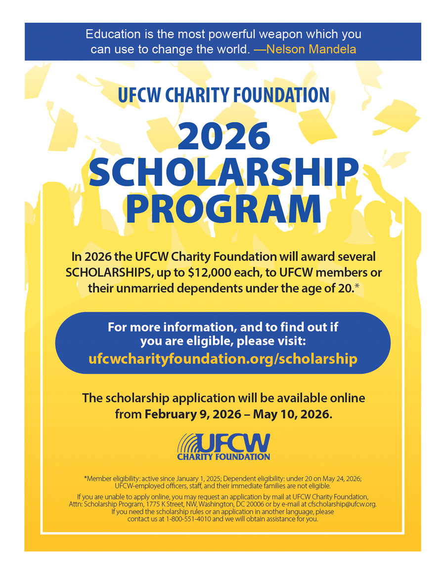 For complete details, visit The UFCW Charity Foundation at http://ufcwcharityfoundation.org/scholarship.